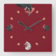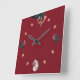 A frivolous clock for poultry fans with four chicken portraits - two matching black hens heads left and right, a larger black hen looking down from the top, and a white sussex hen at the bottom. The intermediate hours are small eggs. A bit of humour for the kitchen :) This version has a dark maroon red background which can be changed using the customise button and then edit.