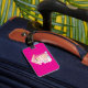 This was purchased as part of a 40th Birthday present for my nephew who is going to Vegas. It is made of high quality, very study and we decided only to put his name on the back of the tag, but you can add a full address if you so wish.