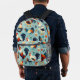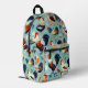 Chickens and Roosters Seamless Pattern Design. Farm animals; Rooster and Hen Graphic Design. White, blue, red, and orange.