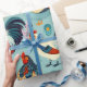 Chickens and Roosters Seamless Pattern Design. Farm animals; Rooster and Hen Graphic Design. White, blue, red, and orange.