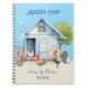Coop manager, spiral bound notebook, size 6x8 inches. Light blue chicken coop design. Chickens, rooster, flowers, tree, jug and shovel are also part of the design. A bright blue sky and birds flying complete the rural farm theme. Personalise with a title, "sales and notes" and year. Homesteaders can use for coop building, chicken raising, and egg selling notes. Perfect for adults and kids.