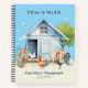 Coop manager notebook with optional page styles. Large 8.5 x 11 inch size, spiral bound with ring colour options (red is shown). This journal has a fun, rural coop image on the front and three lines of text templates, for title, year and other. Blue skies background and hens and rooster in front of a cute, light blue chicken coop, is the design. The farm scene also includes a shovel, jug, wildflowers and a green tree. Choose from many paper styles, with wide or narrow lines, sketch areas, graph paper, and more. Customise for kids, or adults, who manage the homestead coop for business or not. The design transfers well to all other sizes except the heart shape.