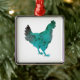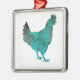 Chicken Hen Teal Blue on White Background Metal Tree Decoration