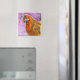 This magnet features my watercolor painting of a chicken - "Henny Penny". She's painted in the colours of a penny - copper, orange, and patina green.