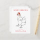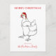 Bring some quirky Christmas chicken cheer to the festive season with this Funny festive Chicken Dance. Personalise this Festive farm Hen Xmas greetings card and delight your chicken lover friends and family this holiday season. A cute chicken drawing in simple black line wearing a funny Santa hat in red and cream. Minimalist Original artwork by artist Catherine Sweetman