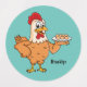 This funny chicken is serving eggs for dinner! Drawn in happy cartoon style.