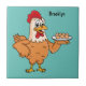 This funny chicken is serving eggs for dinner! Drawn in happy cartoon style.