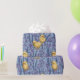 Chickens and hyacinths on sky blue wrapping paper