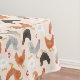 Farm animals, country chickens and roosters tablecloth. Fun chicken pattern on light beige background, french country design.