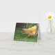 This note card features a buff orpington hen strutting by an old wheelbarrow on the homestead. Choose your size card.
