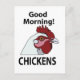 Chickens Good Morning Funny Chicken Postcard original design by Nisha Prabhu. Rise and shine, poultry pals! Start your day with a cluck-tastic chuckle! Our 'Chickens Good Morning' postcard brings a delightful dose of humour straight from the coop. Featuring quirky illustrations of cheerful chickens crowing at dawn, this vibrant card is perfect for sending some morning cheer to friends, family, or your favourite farm enthusiast! Whether it’s for a birthday, just-because, or a fun way to spread some joy, this postcard is guaranteed to ruffle a few feathers and elicit a hearty laugh.