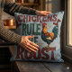 This bold and charming design features a proud rooster standing tall on a wooden perch, surrounded by vintage-inspired typography that declares, "Chickens Rule the Roost." With warm earthy tones and rustic western lettering, this illustration captures the essence of country living and barnyard charm. The playful yet classic style makes it perfect for those who appreciate farm life, cosy farmhouse aesthetics, and lighthearted humour. A touch of vintage illustration and traditional folk art elements bring a timeless appeal, making it a standout choice for lovers of rural charm and countryside vibes. AI generated artwork.