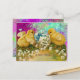 CHICKENS, SNOWDROPS AND EASTER EGG WITH BLUE BOW HOLIDAY POSTCARD