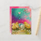 Elegant artistic vintage style floral design with white flowers and funny chickens digital painting and watercolor in pink fuchsia green,orange yellow ,teal,aqua blue colours with gold sparkles and silver foil by Bulgan Lumini (c)