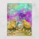 CHICKENS, SNOWDROPS AND EASTER EGG WITH BLUE BOW HOLIDAY POSTCARD