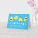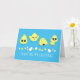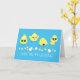They say, don't go counting your chickens before they hatch. Well, what about what happens after they hatch? These yellow baby chicks are excited to meet their new duckling friend. These cute illustrated yellow baby chickens and duck stand on top of illustrated stars and eggs, and are excited for some fun at the farm, barnyard, or around the pond. The text and blue background colour are customisable.