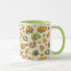 White and lime 11 oz. combo mug with an image of downy yellow chicks, pink eggs in green nests, and pretty pink, blue, purple and yellow flowers. See matching paper plate and square ceramic tile. See the entire Easter Mug collection under the HOME category in the HOLIDAYS section.