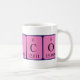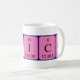 Chico spelled out as C H I C O (Carbon Hydrogen Iodine Carbon Oxygen) on a mug for the scientist in you.