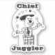 Children's entertainer or clown performer. Fun sticker for the Chief Juggler. For someone always having to juggle. Image is a cartoon of a juggler who is juggling balls. Gift for busy office worker who is always juggling tasks and keeping many balls in the air.