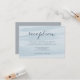 Our pastel blue and grey Chiffon wedding reception enclosure card features a watercolor wash background in sheer tone on tone shades of pastel sky blue, accented with chic calligraphy and serif lettering in dusty slate. Personalise with your wedding reception details, including timing, venue and any additional information like transportation or parking. Designed to coordinate with our Chiffon wedding invitation suite in Sky.