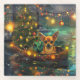 Set sail into the magic of the holiday season with this beautifully detailed illustration, showcasing a proud dog sitting in a festively decorated boat, gliding across a serene Christmas lake. The twinkling lights from nearby pine trees reflect off the water, casting a warm, festive glow that enhances the cosy ambiance. Ornaments dangle from the boat's sides, while glowing lanterns light the way, creating a scene that captures the true essence of Christmas warmth and joy. This nostalgic artwork brings a touch of holiday magic to any space, perfect for those who cherish the spirit of the season.