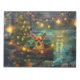 Set sail into the magic of the holiday season with this beautifully detailed illustration, showcasing a proud dog sitting in a festively decorated boat, gliding across a serene Christmas lake. The twinkling lights from nearby pine trees reflect off the water, casting a warm, festive glow that enhances the cosy ambiance. Ornaments dangle from the boat's sides, while glowing lanterns light the way, creating a scene that captures the true essence of Christmas warmth and joy. This nostalgic artwork brings a touch of holiday magic to any space, perfect for those who cherish the spirit of the season.