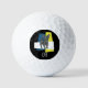 Chihuahua cute dog silhouette grid abstract pattern yellow and blue with tricolour background in a black circle. Personalise with your three initials in white under the dog shape. Perfect for the dog lover in your life or the dad who loves golfing, these golf balls are the perfect way to show off your passion.