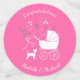 Include the big brother or sister fur baby in the celebration with this adorable Chihuahua dog baby shower design! Perfect for a puppy lover with a baby on the way. The Chihuahua is next to an adorable vintage carriage. The pink makes it perfect for a baby girl on the way!