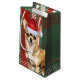 A cute tan or sometimes called fawn coloured Chihuahua dressed for the season in Santa's hat, pairs with a red and green holiday plaid to create a wonderful gift bag for the dog lover's holiday season.
