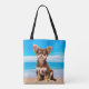 Chihuahua Dog Sitting on Tropical Beach Tote Bag