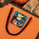 A cute Asian witch holding her chihuahua close while some autumn magic dances around them and some autumn leaves.