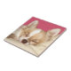 Long haired fawn and white chihuahua snoozing away in a nap face photo ceramic tile