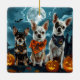 Unleash the spooky spirit with this eerie Halloween design featuring a pack of dogs under a dark, moonlit sky, surrounded by flying bats and glowing pumpkins. Perfect for those who love a touch of frightful fun with their furry friends!
