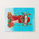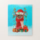 Chihuahua in snow with Christmas gifts Jigsaw Puzzle