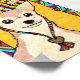Decorate your walls in style with this unique, colourful folk art mini poster. In this cute, whimsical artwork, this charming chihuahua poses against a festive bright yellow background, wearing a rainbow striped sombrero. The hat also has a rainbow drawstring that is held together by a golden heart. The entire scene is surrounded by a matching multicolored Mexican style border and adorned with more gold hearts. This fun small poster would make a great gift for dog lovers who also love bright colours.