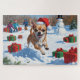 Chihuahua Running in Snow with Christmas Hat Jigsaw Puzzle