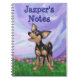 Animal Parade Chihuahua Dog Coordinating Personalized Stationery and Accessories features our original art of a cute black and tan Chihuahua dog character standing in a grassy yard with a textured blue and purple sky with a playful wavy purple border. This fun pet art, painted by our talented children’s illustrator, Traci Van Wagoner, is perfect Chihuahua lovers, dog lovers, and humorous animal art lovers of all ages. On many of our whimsical small dog stationery set accessories you'll find this cute dog coming and going with the his head on one side and this tail on the other. Join the Animal Parade and bring a smile to the face of someone you love with a gift of our cute coordinating and personalized Chihuahua dog stationery gift sets. Woof!