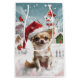 This festive design captures the joyful spirit of the holiday season, featuring an adorable pup wearing a Santa hat. The dog is nestled in a winter wonderland, complete with a snowman, a decorated Christmas tree, and beautifully wrapped presents. Snowflakes gently fall, adding a magical touch to the scene, while the vibrant colours of the holiday decorations create a warm and cheerful atmosphere.