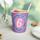 Commemorate a 6th birthday with paper cups which are decorated with the name of the child, as well as their age, and date of birth.