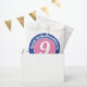 Child's birthday party paper bags. Commemorate a 9th birthday with a bag which is decorated with the name of the recipient, as well as their age, and date of birth.
