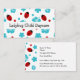 Daycare business card template in bright and fun design including cute ladybugs, flowers, and hibiscus flowers in turquoise, Red, and wbite. Highlights your company name on the front and displays your daycare details on the flip side. Designed as a daycare or babysitting design.