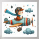 This whimsical illustration of a child flying an old-fashioned aeroplane will make your child's room one-of-a-kind. Perfect for nursery, playroom, or bedroom. AI assisted graphic purchased with commercial use. Artwork: RedHeronLighthouse