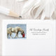Cute Christmas Address Label of a child in a red coat leading a white horse in the snow. Perfect for a horse lover Christmas tree or a special gift for someone for the holidays.