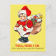 Cute, vintage, Christmas Holiday illustration of a little girl with a bag of toys, dressed up as Santa Claus.