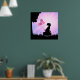 Beautiful silhouette of a little girl with pink balloons and pink butterflies against a pink and purple sunburst background office wall art print.