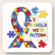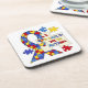 A puzzle piece that reads 'I Love a Child With Autism", puzzle pieces of blue, red, and yellow and the autism awareness ribbon on autism awareness T-shirts, hoodies, mugs, magnets, cards, stickers, bags, keychains, buttons, and other items.