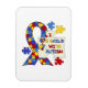 A puzzle piece that reads 'I Love a Child With Autism", puzzle pieces of blue, red, and yellow and the autism awareness ribbon on autism awareness T-shirts, hoodies, mugs, magnets, cards, stickers, bags, keychains, buttons, and other items.