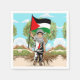 Cute Little Boy from Gaza, wearing a Keffiyeh, and holding the Palestinian Flag, symbol of freedom and independence of the free Palestine. Original Vector graphic art illustration copyright BluedarkArt TheChameleonArt.