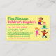 Promote your childcare/daycare/babysitting services with these eye catching business cards. These business cards display an illustration/cartoon of diverse group of happy children. Customise by modifying colours and fonts to more appropriately suit your own branding needs.
