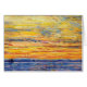 Impressionist landscape painting from 1907 showing a beautiful orange and red evening sunset sky with a blue ocean edge in the foreground and a group of people standing on the shoreline.
